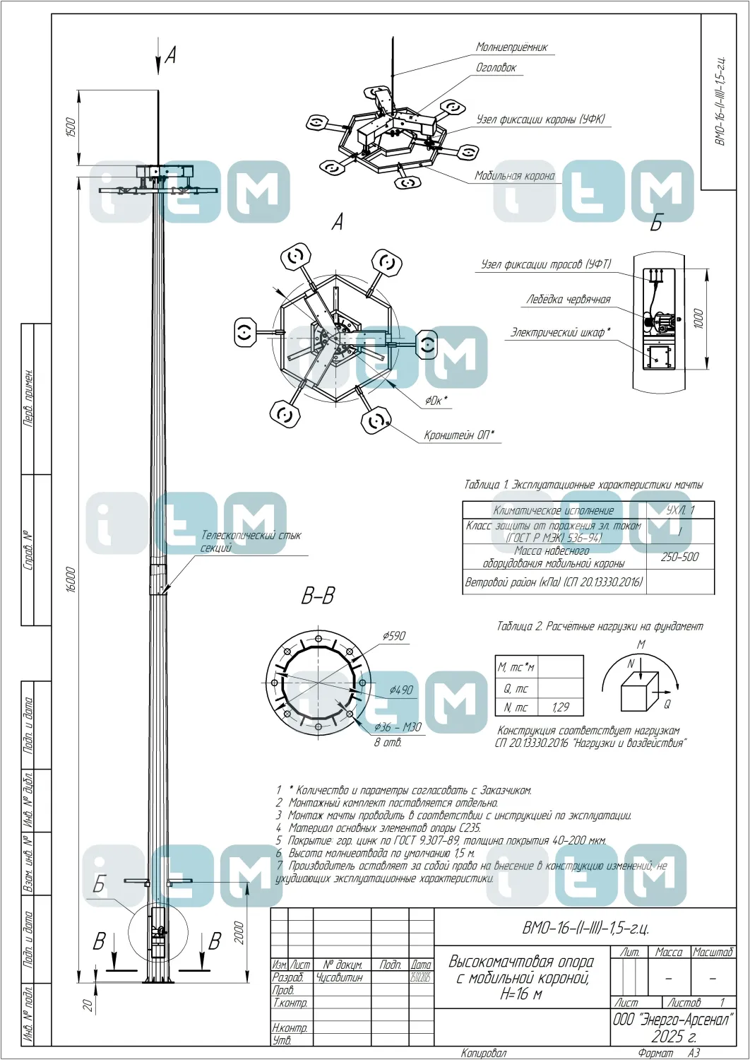 Особенности мачты ВМО-16-400/190 (МГФ-16-М)